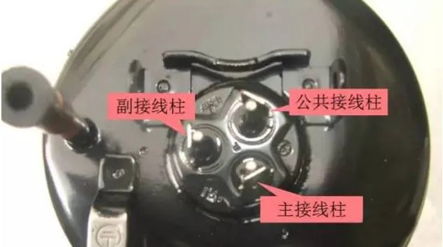 萬用表的歐姆檔(一般200歐姆的檔位)測量每兩點之間的電阻值,阻值大的兩點(BC)為啟動和運轉繞組。剩的那個點(A)是公共點。然后把所測量的兩個點(B,C)再分別跟公共端連接,阻值較大的是啟動繞組,小的為運轉繞組。三點之間阻值關系為:BC=AB+AC。