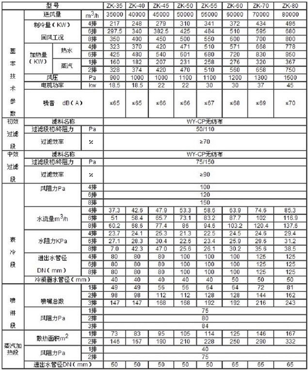 zhngyou/眾有組合式空調主機技術規格: